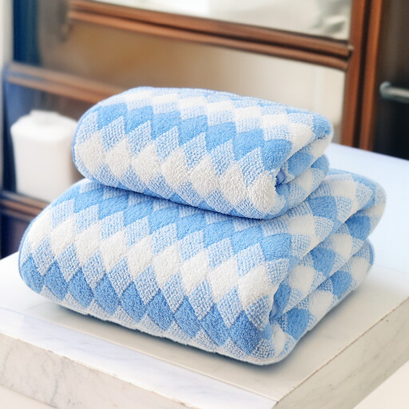 コーラルフリースのダイヤモンド柄タオルとバスタオル